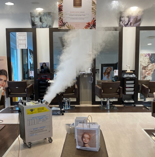 Le nostre soluzioni professionali ci permettono di sanificare ambienti come asili, scuole, caserme, centri estetici, palestre, uffici, aree produttive, negozi, centri commerciali, ristoranti, abitazioni private, mezzi pubblici e altro.